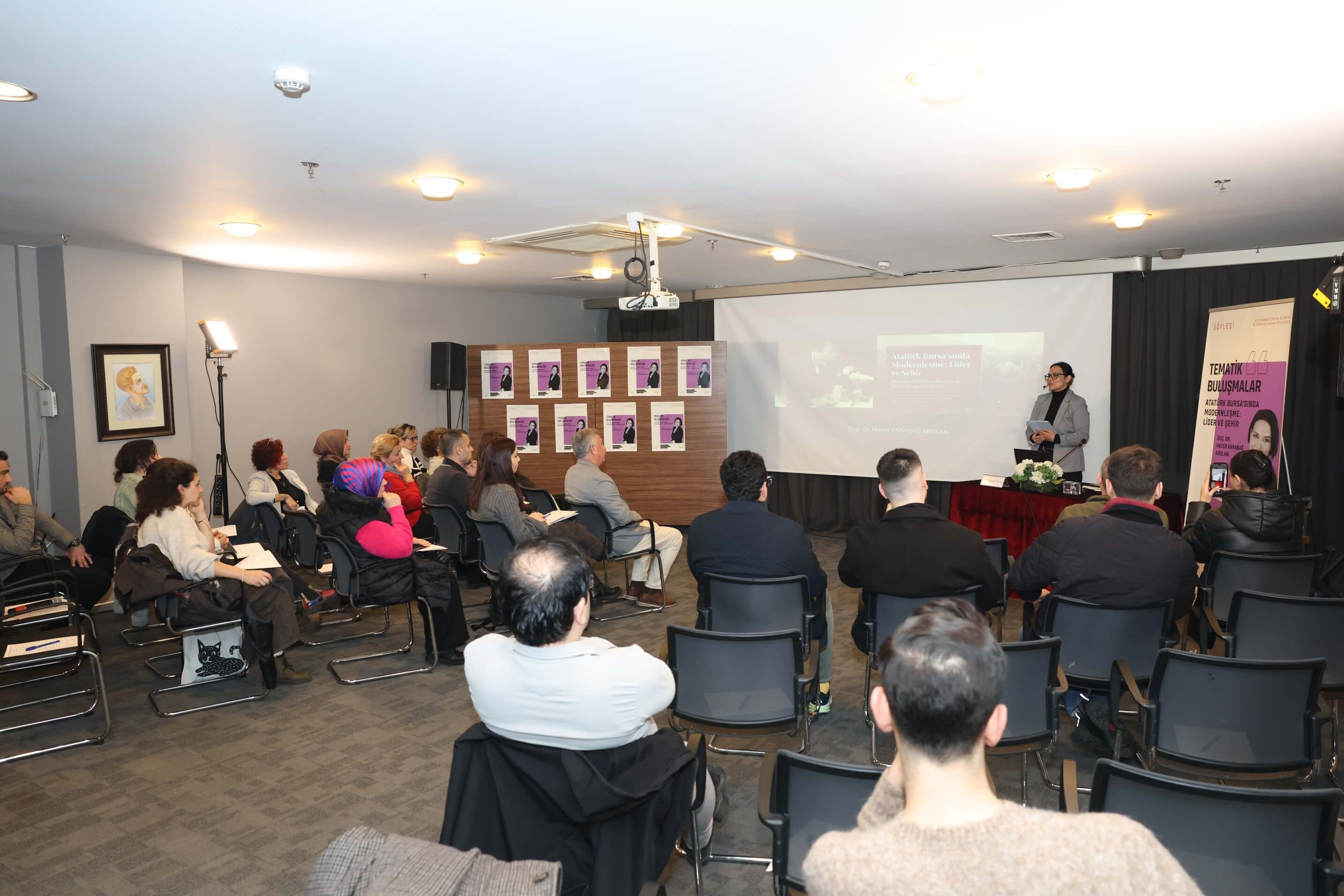 Nilüfer Belediyesi tarafından düzenlenen “Tematik Buluşmalar” söyleşisinin bu ayki konuğu, Bursa Uludağ Üniversitesi (BUÜ) Fen-Edebiyat Fakültesi Tarih Bölümü Öğretim Üyesi Doç. Dr. Hacer Karabağ Arslan oldu. Nazım Hikmet Kültürevi’nde düzenlenen “Atatürk Bursa’sında Modernleşme: Lider ve Şehir” başlıklı söyleşide Arslan, Atatürk’ün Bursa’ya gerçekleştirdiği ziyaretlerin arka planını ve kentin sosyal, ekonomik ve kültürel değişimini katılımcılara aktardı.