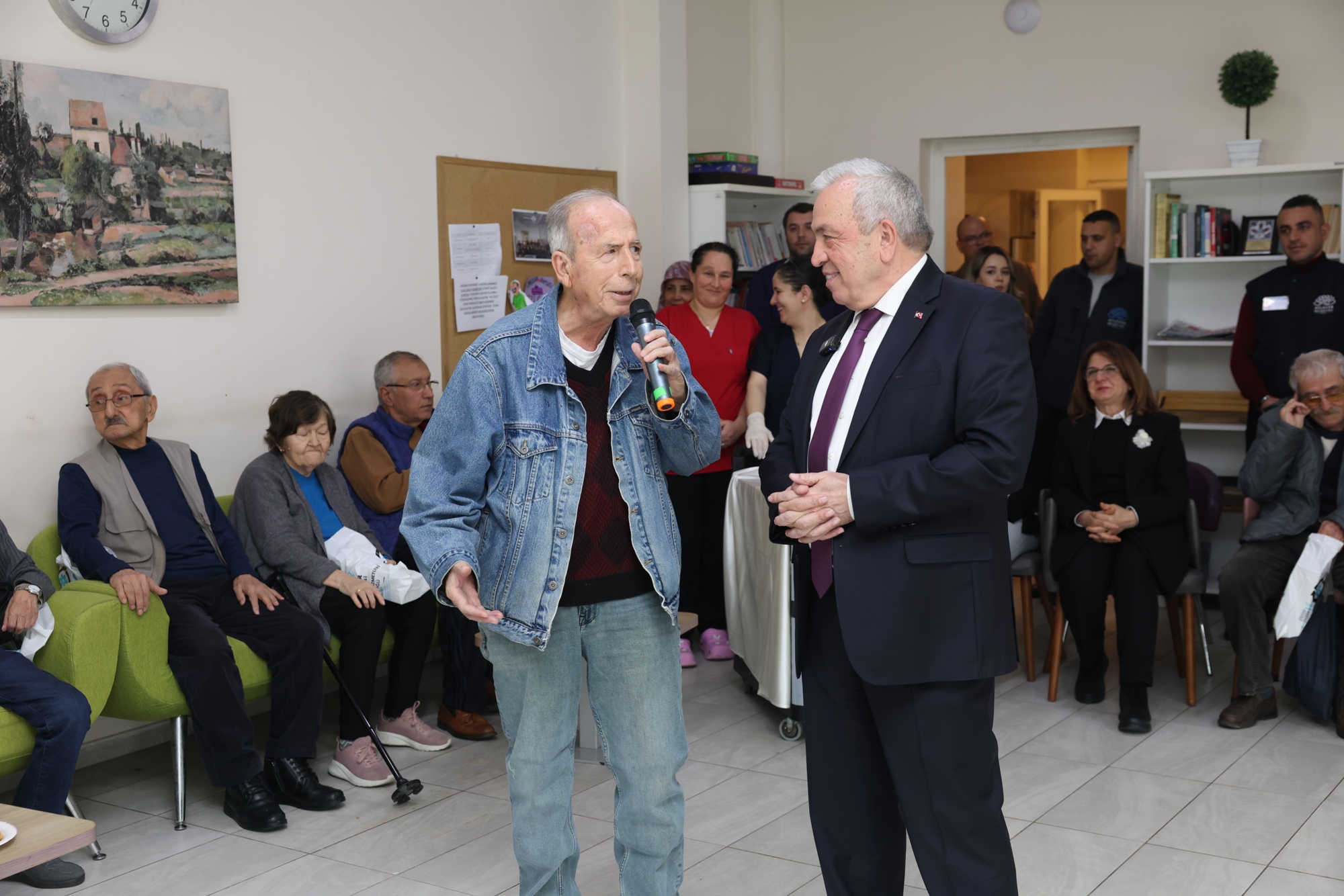Ziyaretin ikinci durağı olan İnci ve Taner Altınmakas Huzurevi’nde ise eğlenceli anlar yaşandı. Başkan Şadi Özdemir, burada huzurevi sakinleriyle birlikte sevilen şarkıları seslendirdi ve okunan şiirlere eşlik etti. Samimi bir ortamda gerçekleşen ziyarette Başkan Şadi Özdemir, sakinlerle tek tek ilgilenerek taleplerini not aldı.