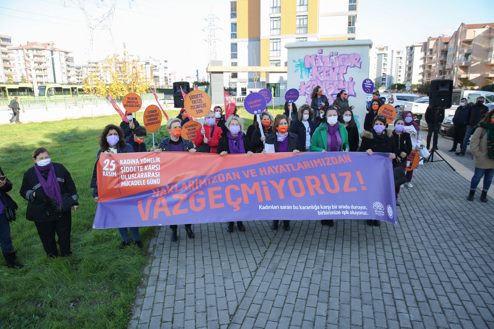 1999 yılında kadına yönelik şiddete karşı toplumda farkındalık oluşturmak amacıyla BM Genel Kurulu kararı ile ilan edilen “25 Kasım Kadına Yönelik Şiddete Karşı Uluslararası Mücadele Günü”nde Nilüferli kadınlar, sınırlı sayıda da olsa bir araya gelerek bu konudaki mücadeleyi sürdüreceklerini haykırdılar.