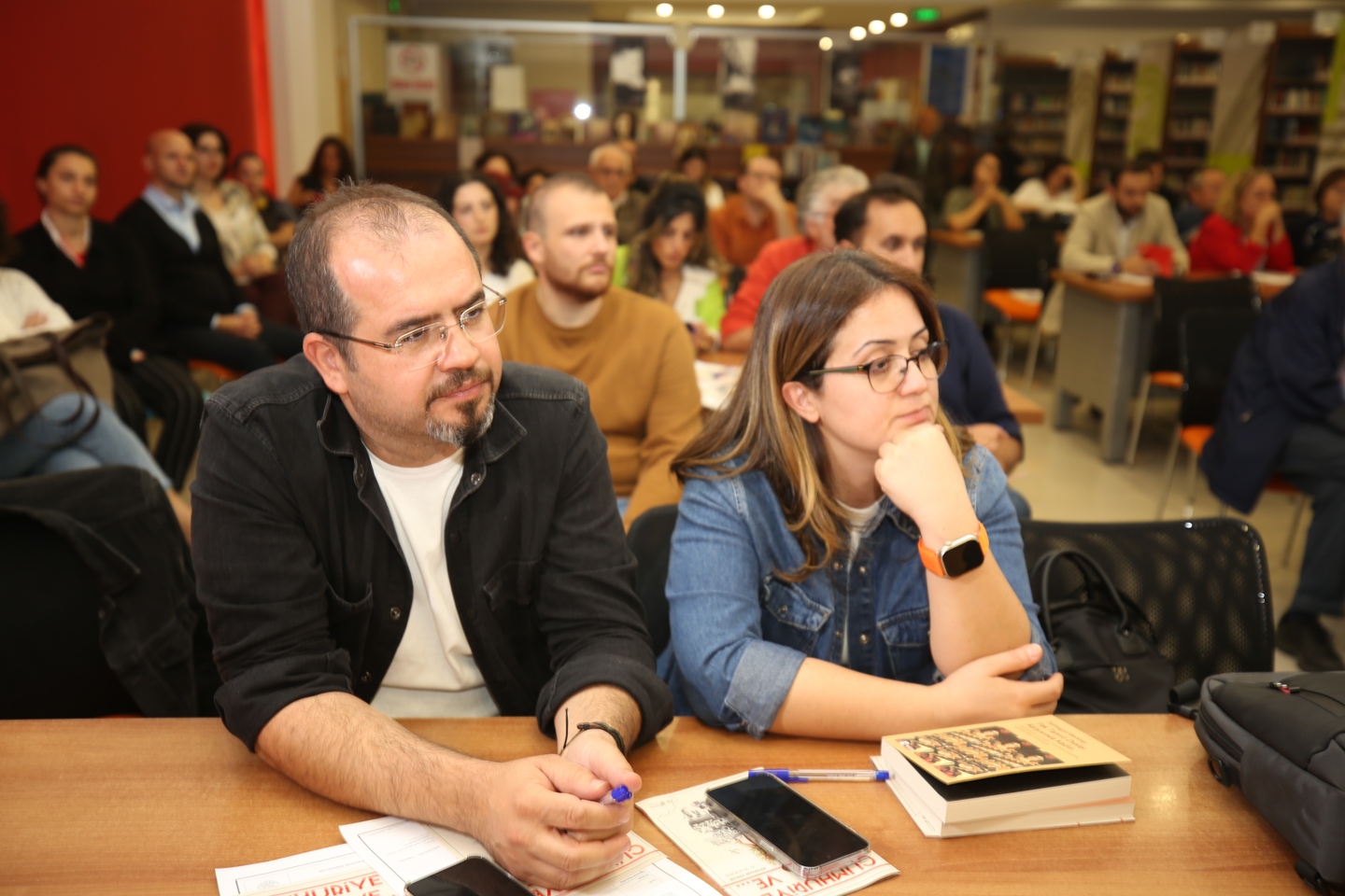 Soru cevap kısmının ardından Nilüfer Belediye Başkan Yardımcısı Remzi Çınar, konuşmacılara birer plaket verdi.‘Cumhuriyet ve…’ başlığı altında organize edilen Kütüphane Günleri Programı kapsamında Program Danışmanı Murat Sevinç de, öğrencilerle bir araya gelerek, ‘Anayasa ve Demokrasi’ konulu bir atölye çalışması gerçekleştirdi. Üçevler Kütüphanesi’ndeki organizasyona Özel 3 Mart Anadolu ve Fen Lisesi’den 25 öğrenci katıldı. Program sonunda Sevinç’e plaket, öğrencilere de katılım belgesi verildi