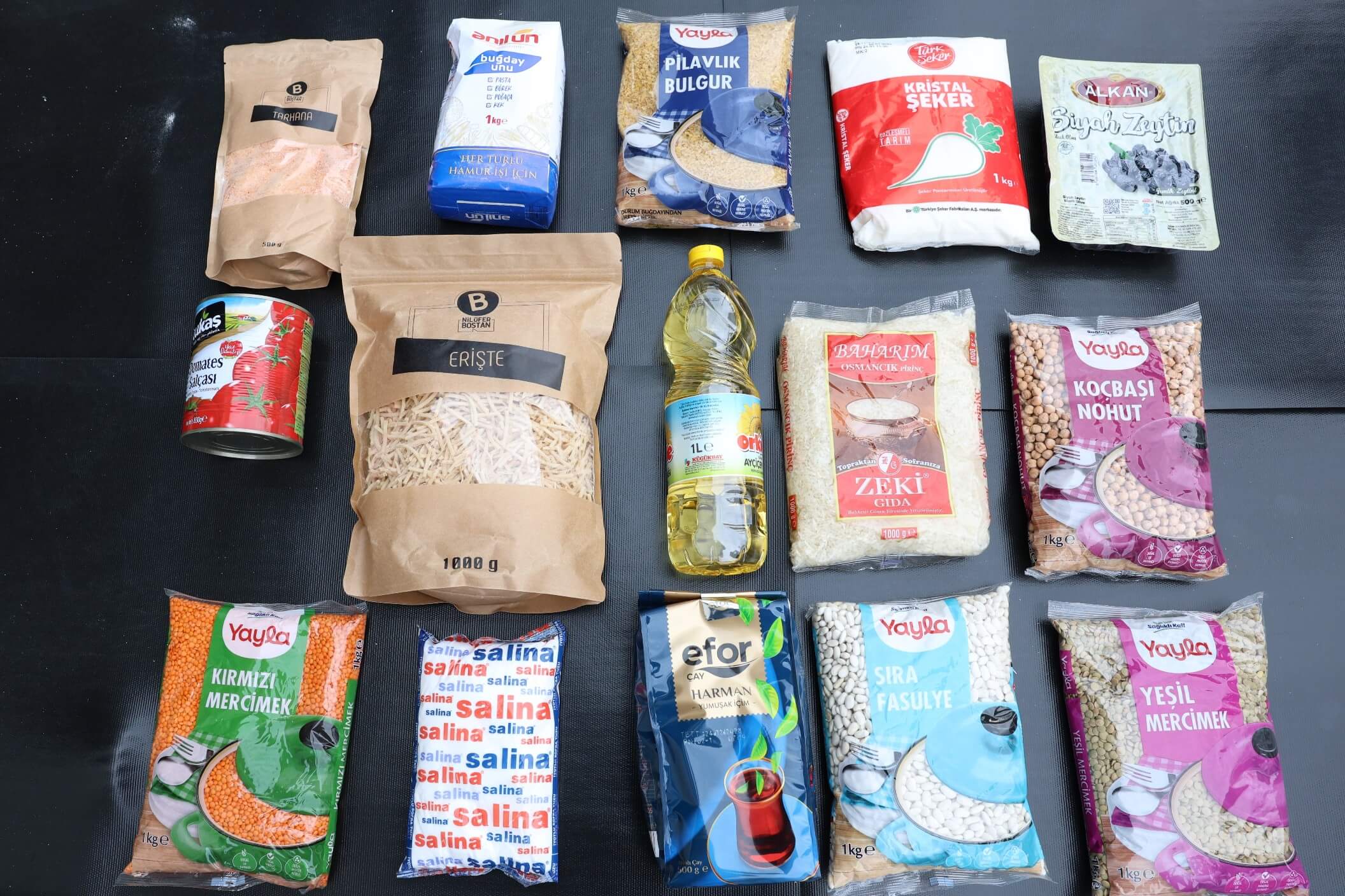 Erzak kolilerinde temel gıda ihtiyaçlarının yanı sıra Nilüfer Tarımsal Kalkınma Kooperatifi (NİLKOOP) aracılığıyla yerel üreticiden alınan ürünler de yer alıyor. Hazırlanan paketlerde toz şeker, çay, zeytin, ayçiçeği yağı, domates salçası, tarhana, erişte, tuz, buğday unu, fasulye, kırmızı mercimek, bulgur, osmancık pirinci, yeşil mercimek ve nohut bulunuyor.