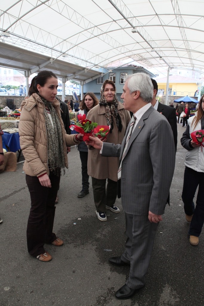 Başkan Bozbey daha sonra Nilüfer’de kurulan pazar yerlerini de ziyaret ederek, kadınların özel gününü kutlayıp, çiçek dağıttı.