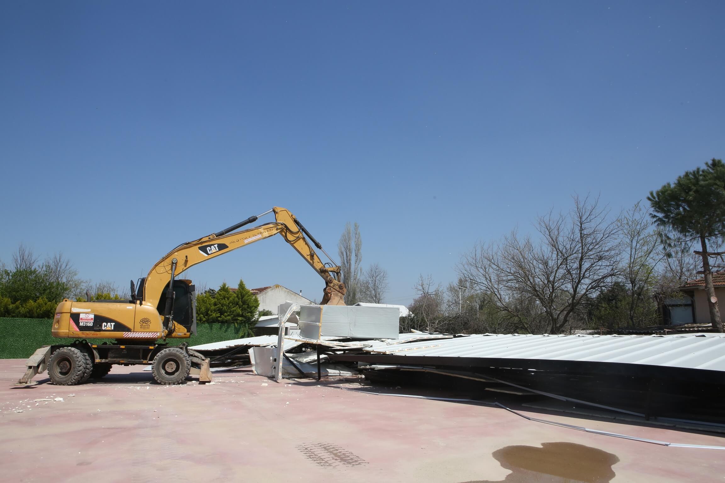 Nilüfer Belediyesi yıkım ekipleri, imara aykırı yapılarla mücadele kapsamında Demirci ve Alaaddinbey Mahallesi’nde tespit edilen 3 kaçak yapıyı yıktı.