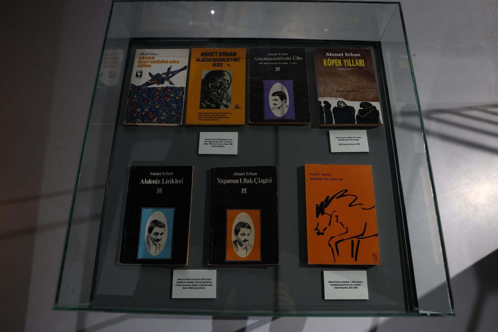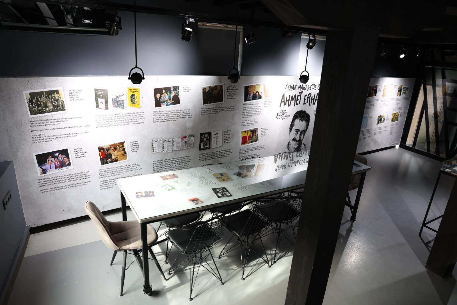 Açılışı yapılan “Kenar Mahallede Bir Ahmet Erhan” sergisi, şairin dünyasına görsel bir yolculuk sunuyor. Küratörlüğünü C. Hakkı Zariç’in yaptığı sergide; Ahmet Erhan’ın kitaplarının ilk baskıları, kişisel fotoğrafları, mektupları ve özel eşyaları yer alıyor.