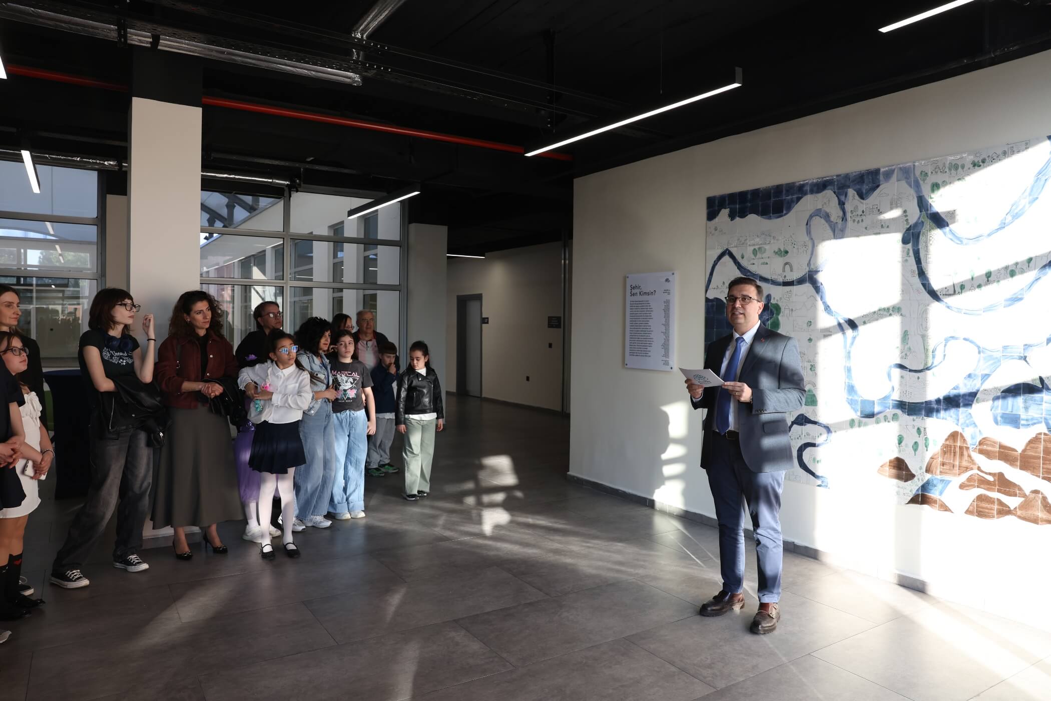 Açılışta konuşan Okan Şahin, “‘Şehir Sen Kimsin?’ Aslında bu, koskoca bir soru. Biz de, 23 Nisan Ulusal Egemenlik ve Çocuk Bayramı’nda bu soruyu Nilüfer’de yaşayan 44 çocuğumuza sorduk. Onlar cevabı tek tek vermek yerine, hep birlikte vermeyi seçti. Kentlerini anlattılar. Her biri kendi mahallesini, sokağını, anısını bu panoya bıraktı” dedi.